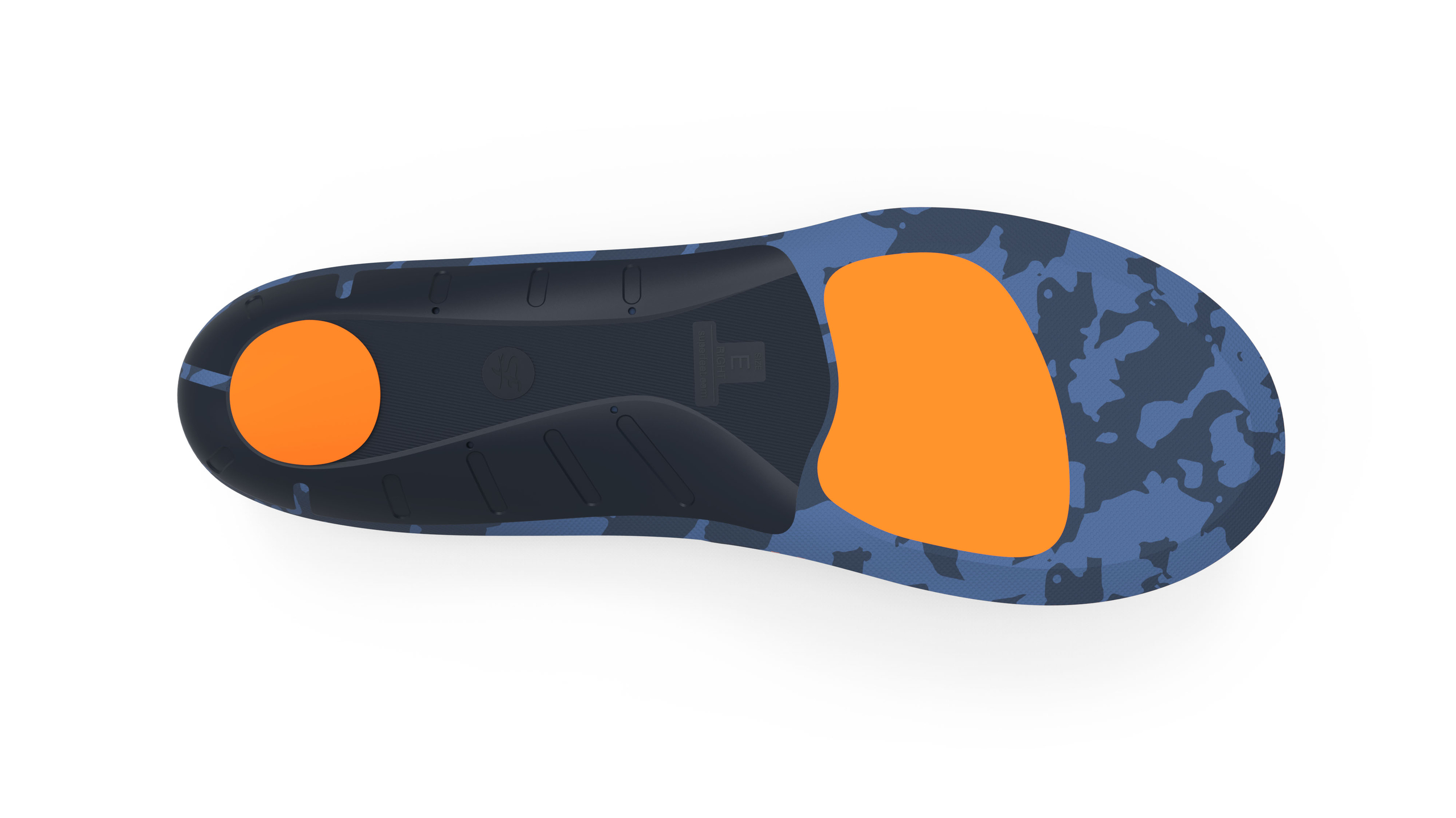 Wyprofilowany, aby ustabilizować i podeprzeć stopę, zmniejszając nacisk na stawy skokowe i kolanowe.